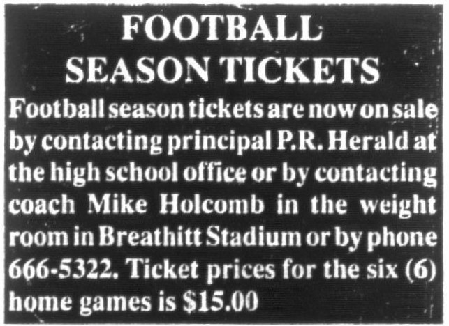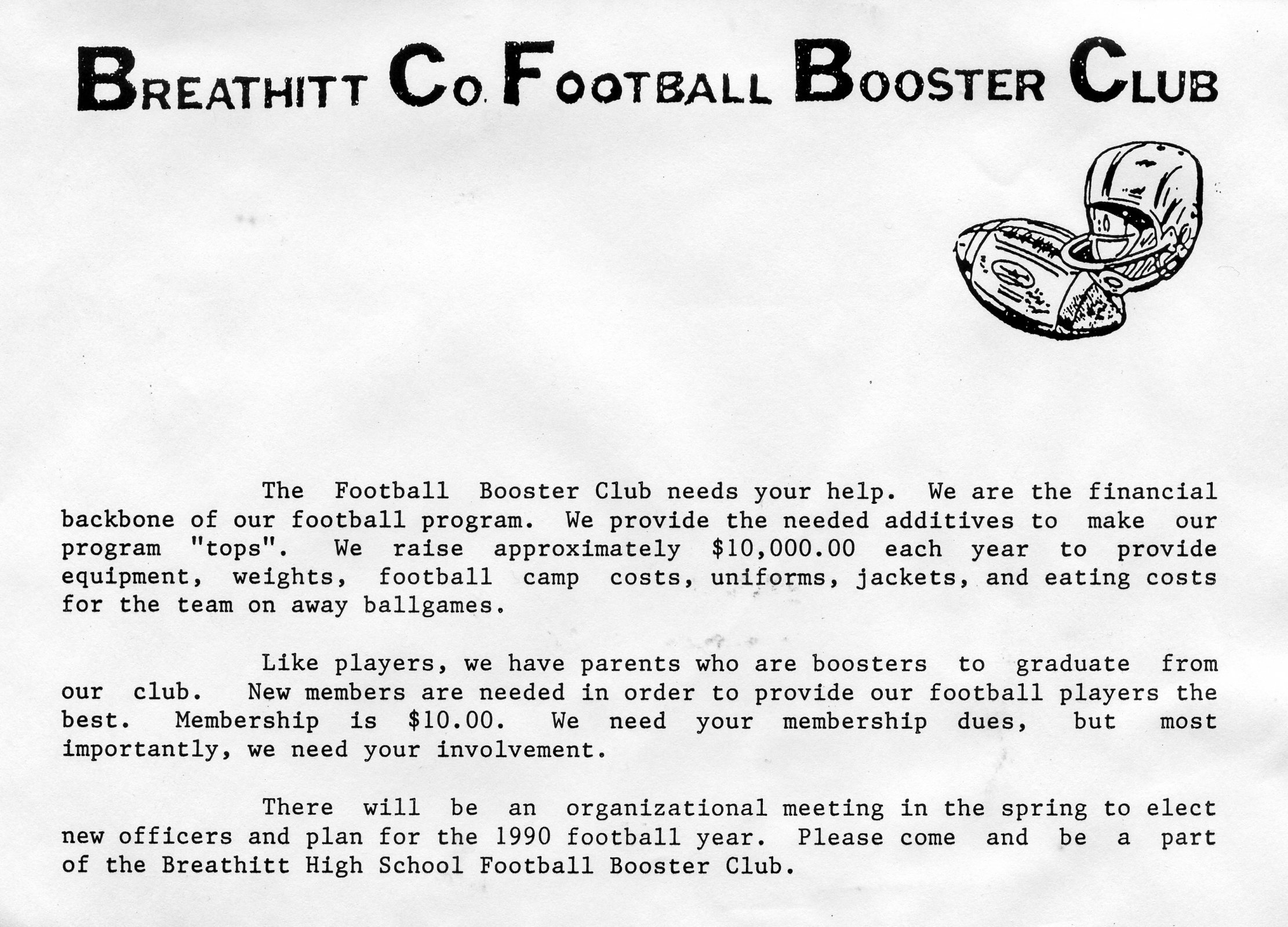 The Breathitt High School Football Booster ran a letter from the Boosters’ President and a simple cartoon in the February 2, 1990 edition of The Jackson Times to illustrate the need for community support.