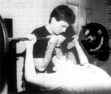 Judd Hubbard is the center of attention on the incline Bench Press. He is being spotted by former BHS star Harrison White.