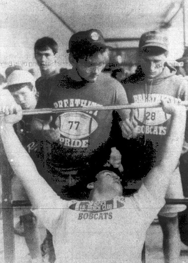 It was an event the boys had been working toward for months, and the fans had been awaiting it with almost equal excitement. No doubt the rain kept some away. On the other hand, many braved the weather to root for their favorite Bobcats or generally watch the 52 participating football players strain every ounce of energy in them to lift one more pound.