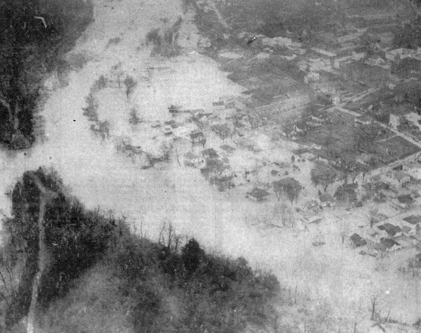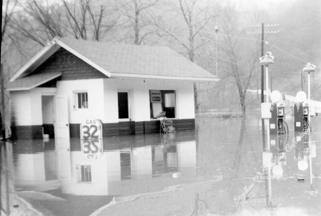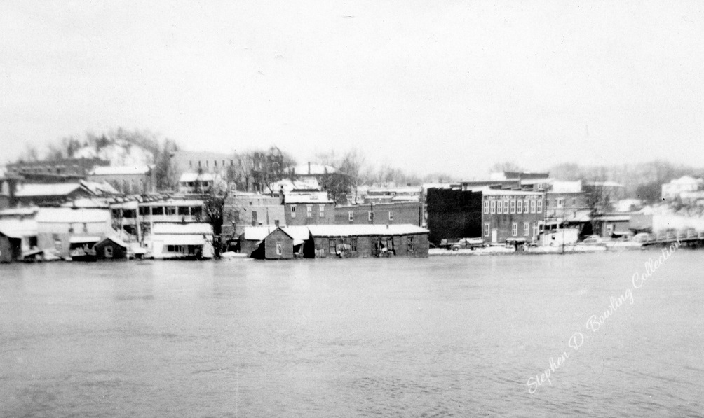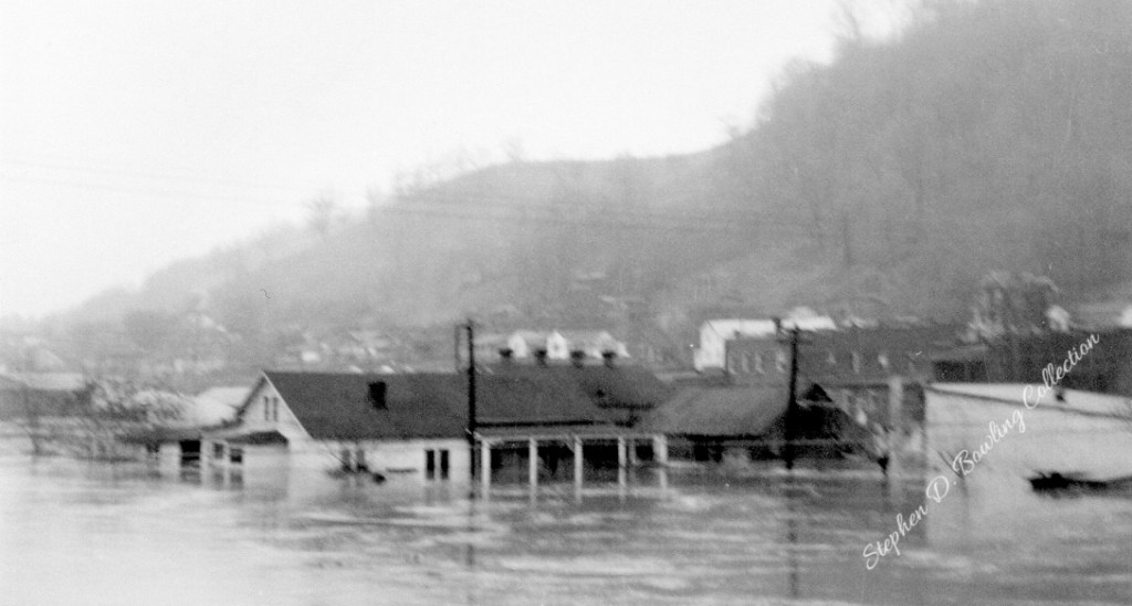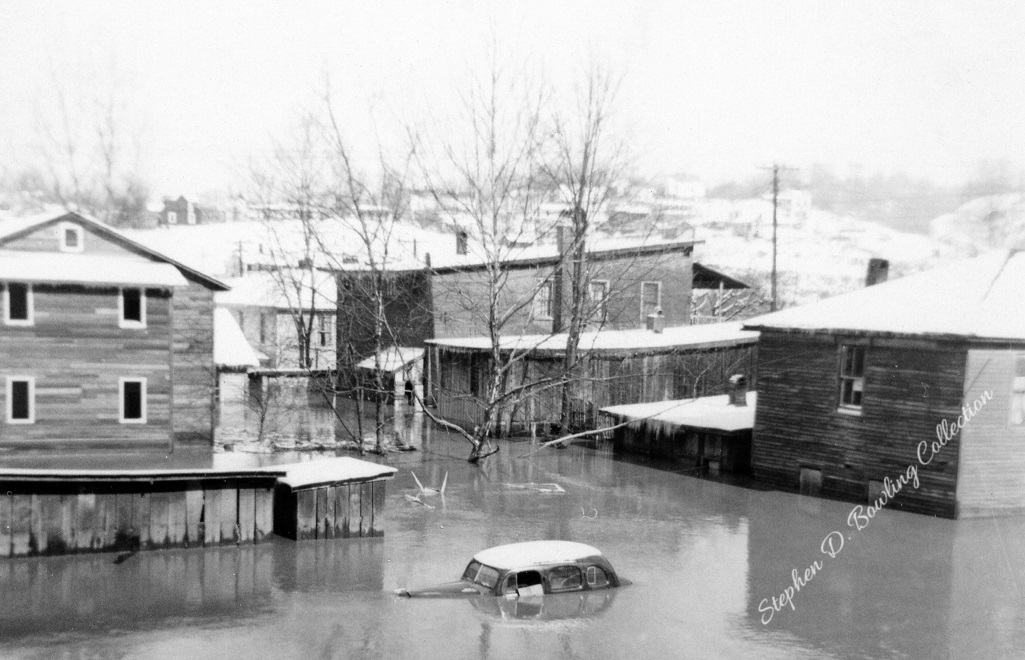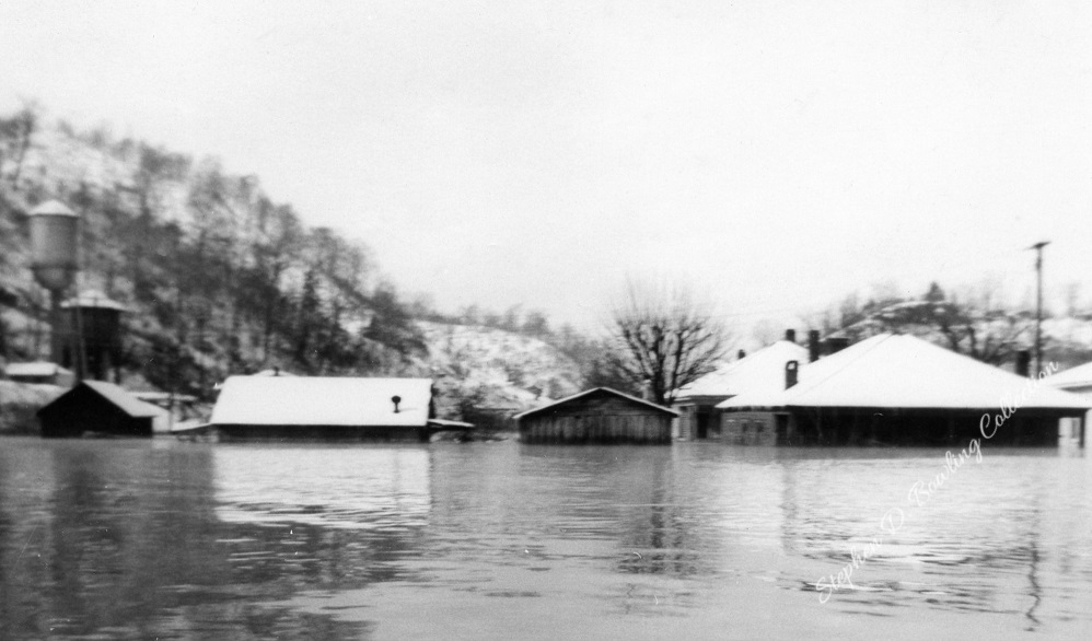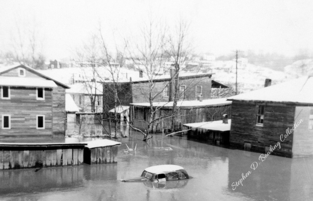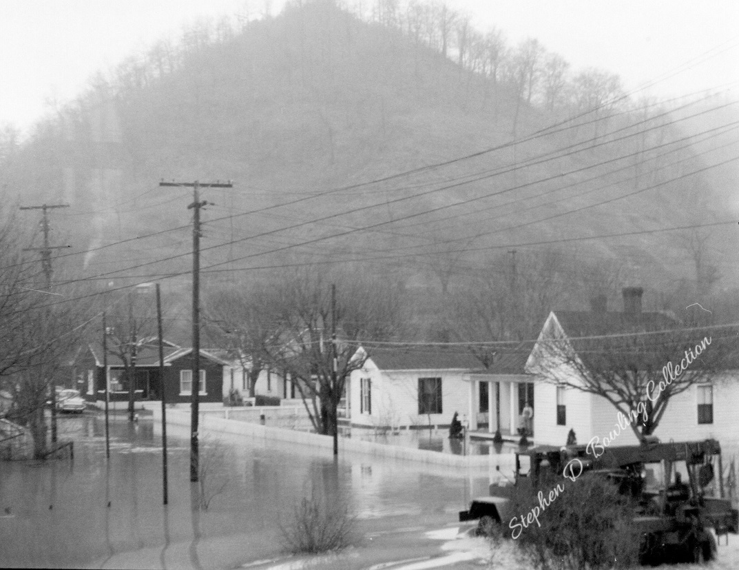 The “tide” rushed down the Kentucky River Valley. The waters of Kingdom Come, Rockhouse, Line Fork, Leatherwood, Maces, Carr Fork, and hundreds of smaller tributaries emptied their drainage into the river as it surged toward Hazard. At Hazard, the river rose quickly. Families scrambled to get household goods up to higher ground. The river jumped its banks and flowed through homes and down the streets of Hazard. By dawn on January 30, 1957, the flood waters at Hazard reached 37.54 feet, setting a new record for the Hazard gauge.