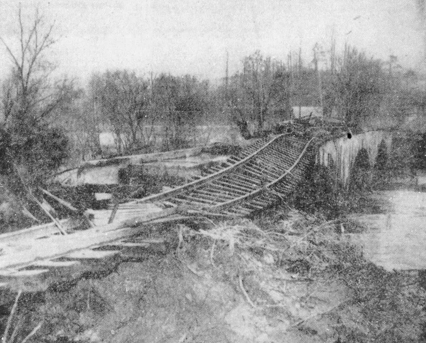 The Lexington Herald published a photo of damaged rail lines on February 2, 1957, with the following caption: “FLOOD HAVOC- These railroad tracks leading into Hazard, Perry County, were twisted out of shape by rampaging waters of the Kentucky River, which left more than $5,000,000 damage in the city and damages estimated unofficially at $20,000,000 in the Hazard area alone. (AP Wirephoto).”