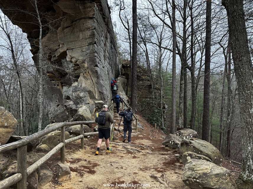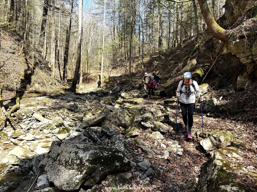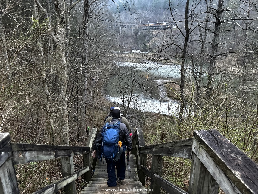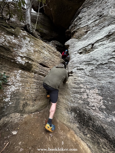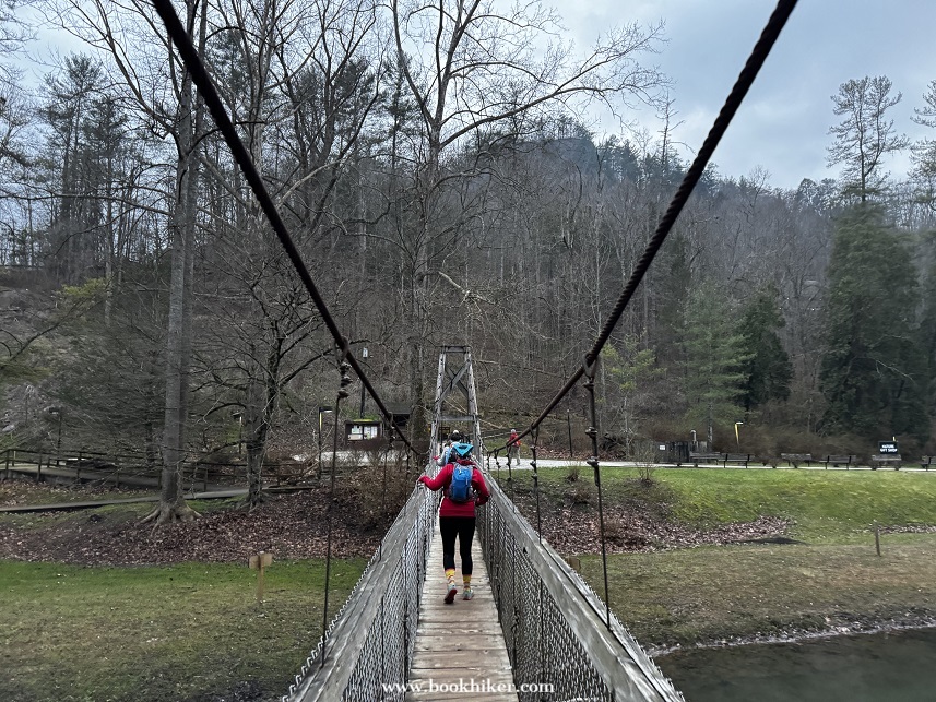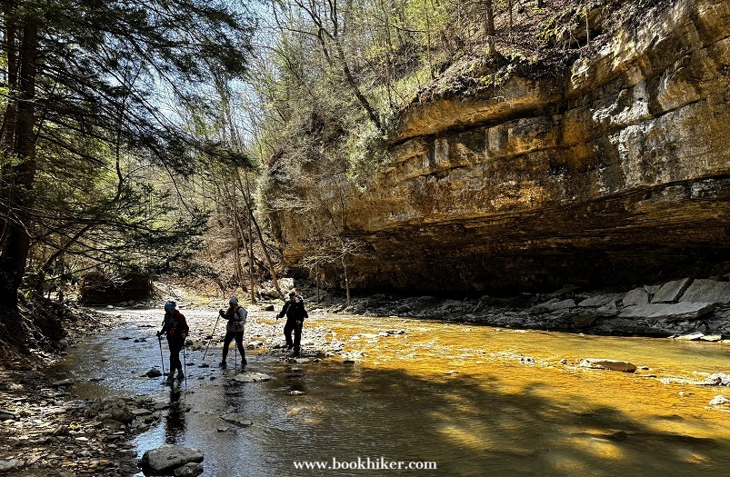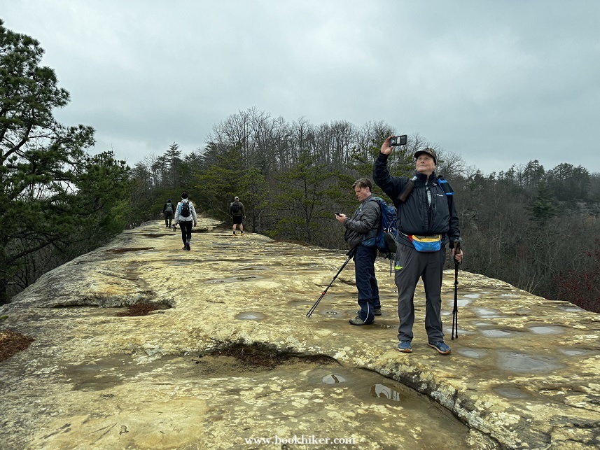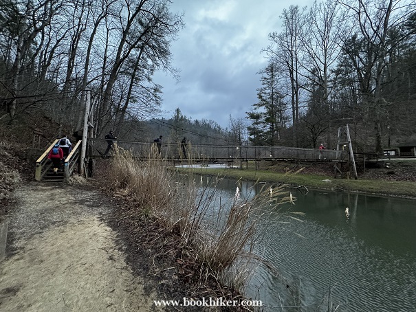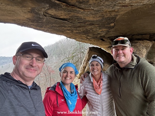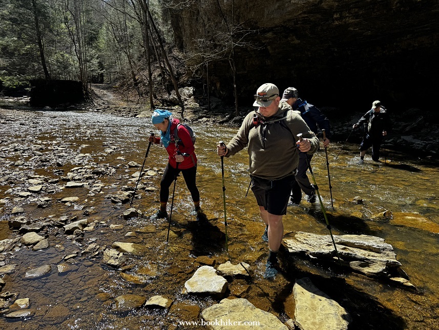 Saturday dawned with the last of the light rain showers lingering into the early morning. By mid-morning, the mist and rain had moved out and the sun started to poke through the clouds at times. Hikers climbed up to Natural Bridge and headed out to the Narrows as the cloud slowly rolled away. Big Bend Road led Challengers from the Natural Bridge Park to the Flat Rock Church, where Steve and Karen waited with drinks and snacks. A walk down Highway 1036 took hikers to the Limestome Crawl and onto New Virginia Ridge. A quick trip on Highway 52 and a turn onto Highway 299 took hikers to the Lago Linda Resort for the evening.