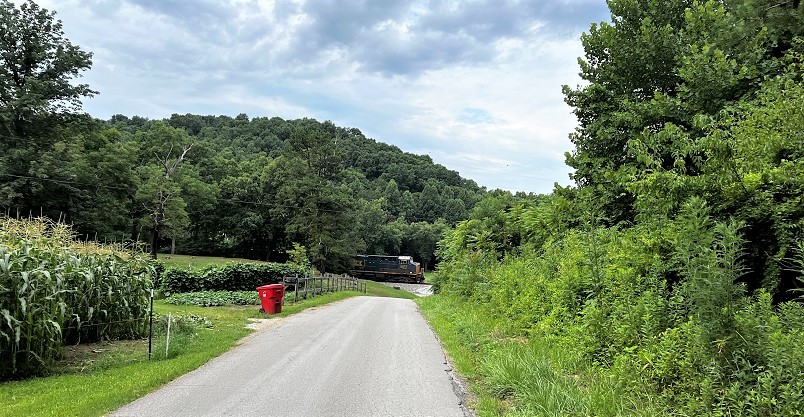 The railroad tracks that run through Hazel Patch once hummed with long trains hauling coal, timber, and other resources from southeastern Kentucky. Today that traffic has slowed, but the railroad still routes several trains a day across these rails at the foot of the hill on Hazel Patch Road. Workmen for the Louisville & Nashville Railroad laid the first railroad tracks here in the late 1800s, creating a major commercial link between the northern states and the south. Today, many train carloads of chemicals and vehicles are carried across this line, owned by Chessie and Seaboard Express (CSX) Railroad.