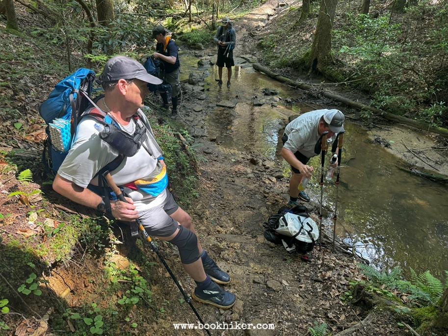 From 49er, it was up the hill and over the Red Rocks. We were pleasantly surprised with some trail magic courtesy of Scott Lyles along the ridgetop on Falls City Road. We hiked past numerous waterfalls and some beautiful sights along our way to the Hawk Creek Log Bridge. It was up out of Hawk Creek, across Highway 80, through Poison Honey Creek, and on to Camp Steve Barbour. Many hiked on the additional miles to the Pine Creek Church for the night.