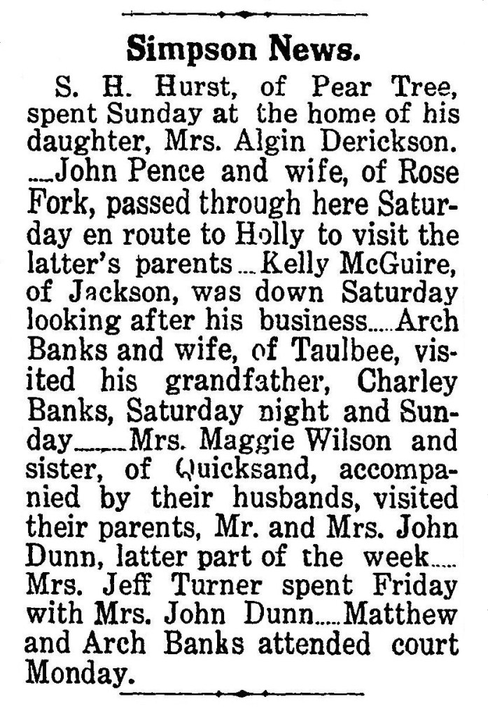 Newspaper – The Jackson Times, Friday, April 7, 1916, page 4, Simpson News.