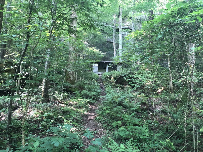 In the late 1970s and early 1980s, a series of Appalachian Trail-like shelters were constructed along the Sheltowee Trace with the plan to provide shelter and camping spots for hikers. Many shelters were planned, but few were ever constructed. Of those completed by volunteers and the United States Forest Service, only three remain today. One of those shelters is located on the hillside above the trail just beyond the Bark Camp Cascades. The shelter can comfortably house 5-6 hikers inside, and more hammock/tent space is available around the shelter.