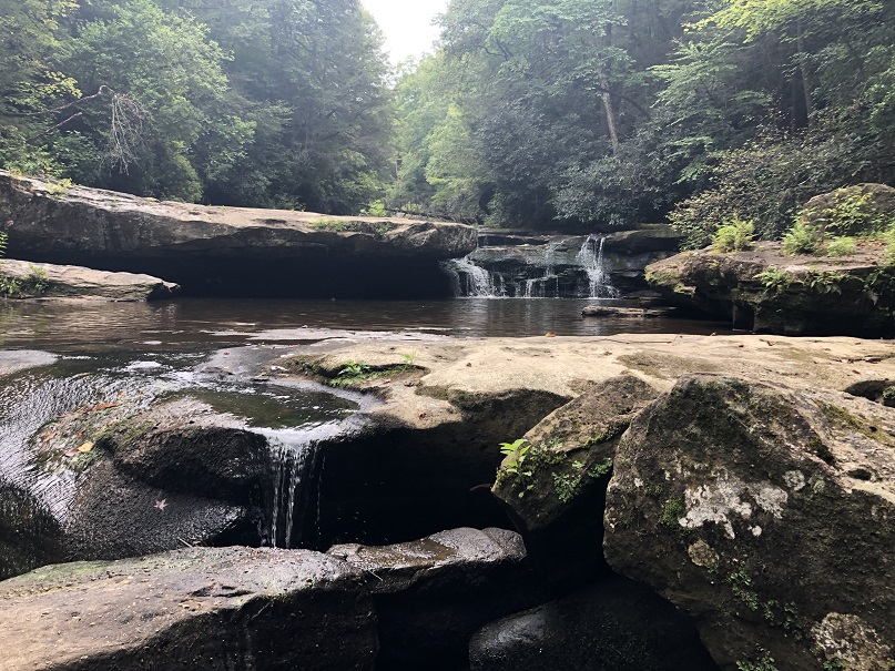 The July hike for the 2024 Sheltowee Trace Challenge will provide hikers with new views and several natural wonders that will please every hiker. We will make our way around Laurel Lake, through Cumberland Falls, and up Thunderstruck Mountain. Here is some information about a few of the interesting sites we will pass along the way.