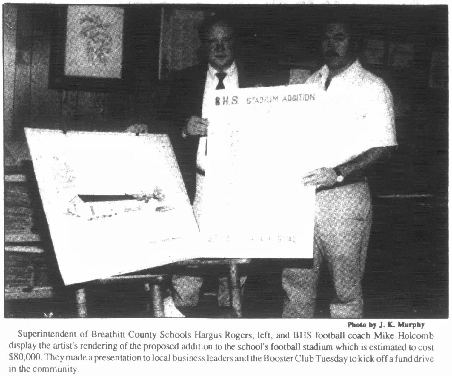 Breathitt football coach Mike Holcomb said today that the fund drive to raise $80,000 to expand the football stadium is “going good,” and we appreciate every donation that’s been made. “I want the people to know that we appreciate every dollar from everyone, anywhere,” he added.