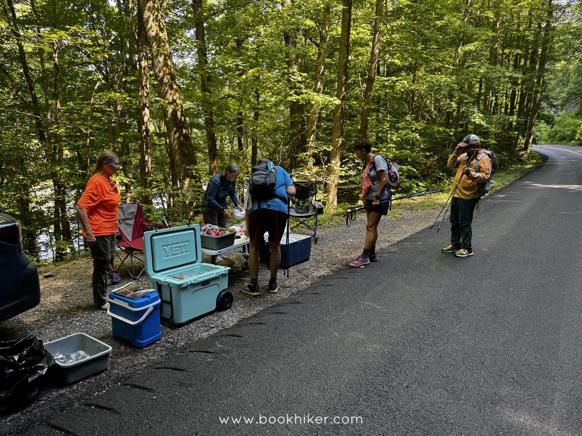 The hike started with a shuttle pickup at Cumberland Falls State Park. A half-hour ride put hikers at their drop-off point. Many in the 6:30 a.m. shuttle had taken advantage of an early hiking day and walked eight miles around Laurel Lake to the dam. They restarted their hike there, and eight hikers were dropped off at the 192/Sheltowee Trace Trailhead.