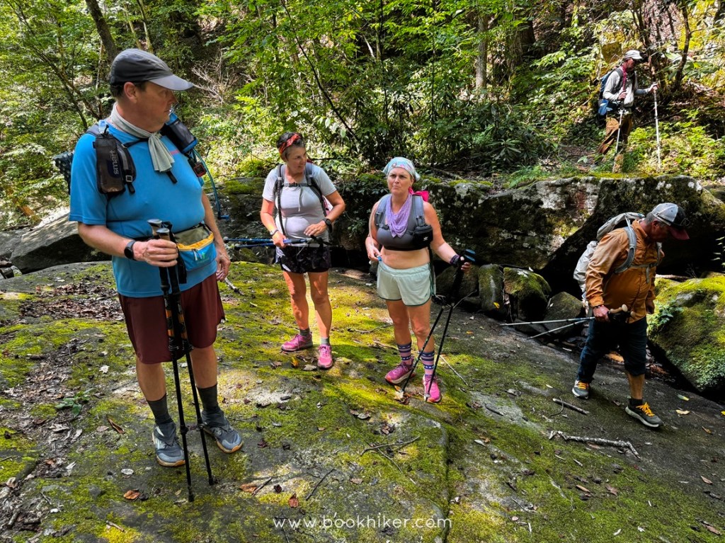 I was happy to stop with our small group for a quick swim at the Bark Camp Cascades, which was refreshing. After a quick snack, we were back on the trail headed to the Falls. The next few miles were an adventure. We had two in our group that succumbed to the impact of the heat. Our pace slowed. We stopped frequently and allowed them to rest; many donated water to ensure their safety. At one point, we stopped to allow a member to cool their core temperature with a dip in the river. But on we trod.