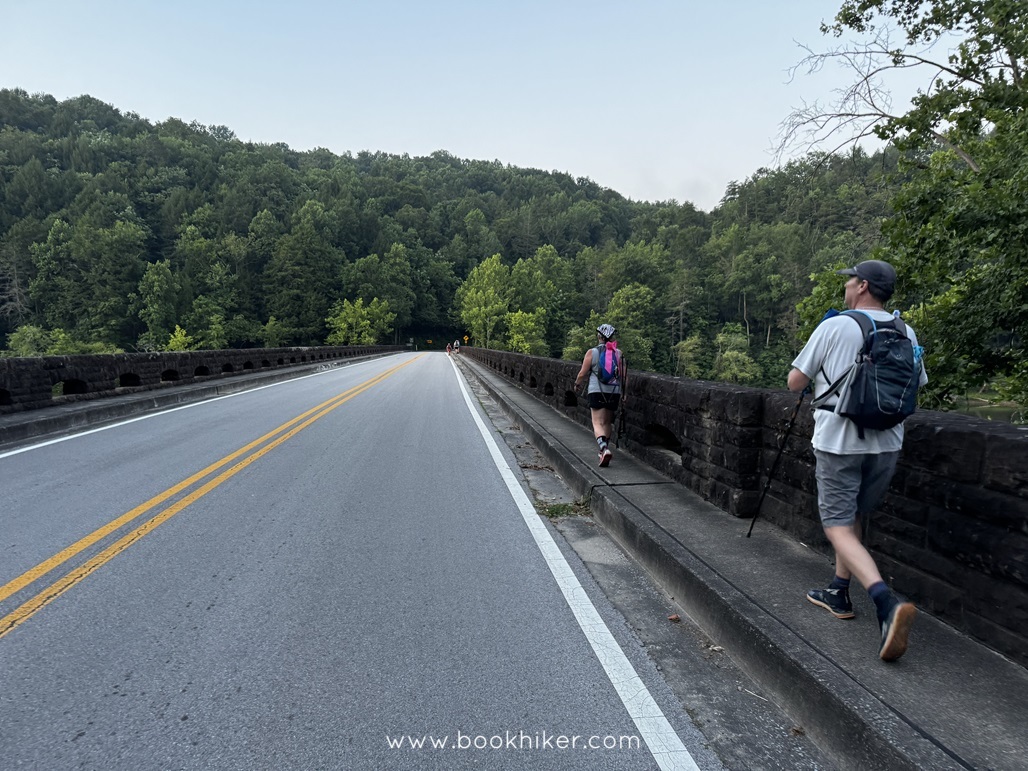 In and out around the lake led hikers to the dam and a duck back into the woods. The trial wound its way down to the river and on down the trail to the Mouth of Laurel and the kudzu display there. After some wonderful trail magic by the Western Kentucky Chapter of the Sheltowee Trace Association, the “Fun Ten” started. The trail followed the Cumberland River and made its way either 11, 5, 16, 7, or 240 miles to Cumberland Falls, depending on which sign you believed.