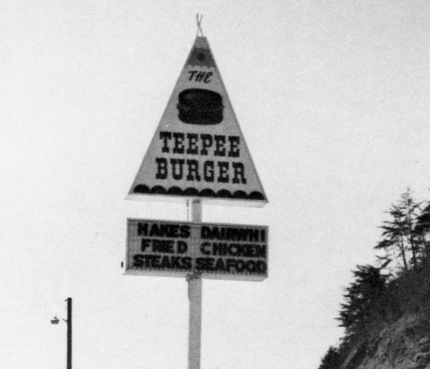 “The Chief” endorsed the TeePee’s menu, especially the namesake TeePee Burger. The burger, which sold for 45 cents each, featured a “double-decker on a bun, and we make our own hamburger…NO frozen meat.” The Chief also promoted the chicken, oyster, and shrimp boxes sold by the new owners. The TeePee also planned breakfast, lunch, and dinner menus and promised twenty-four-hour service.