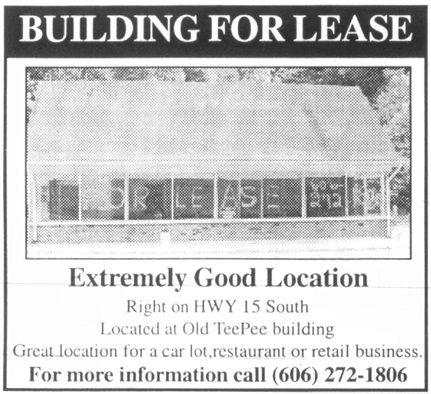 By the middle of 1976, “TeePee Tommy” Howard purchased Paul Burton’s interest in the restaurant and owned the restaurant outright. Encouraged by the popularity of the business and the daily political discussion, Howard filed for the 1977 Democrat Party nominee for Breathitt County Sheriff. The result of the May 1977 Democratic Primary was not as successful for Howard as his restaurant had been, with Elliott Herald winning over Howard and eight other candidates. Howard continued to run the TeePee.