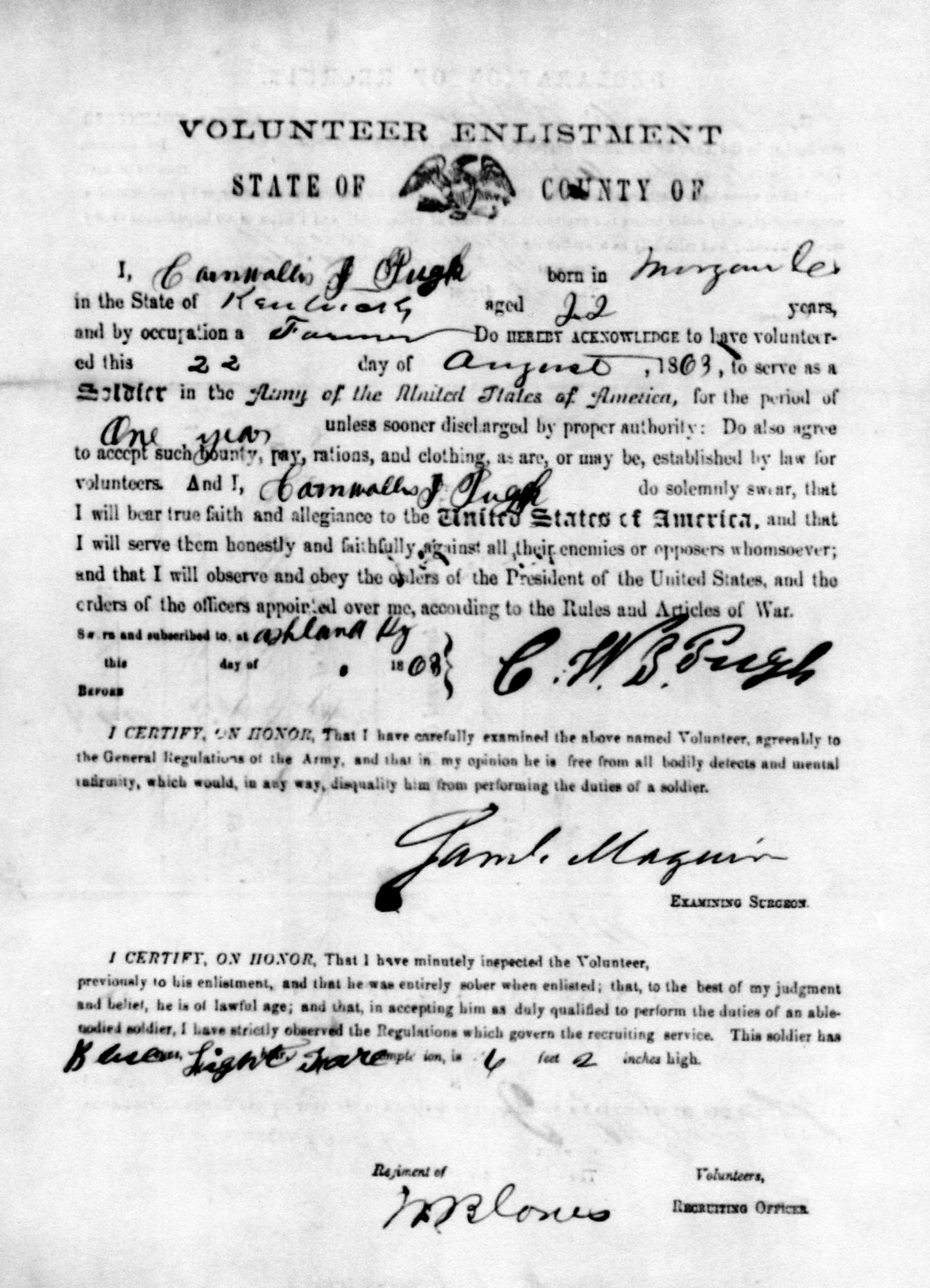 Mustered In: 1861, December 31 at Lexington, Fayette County, Kentucky