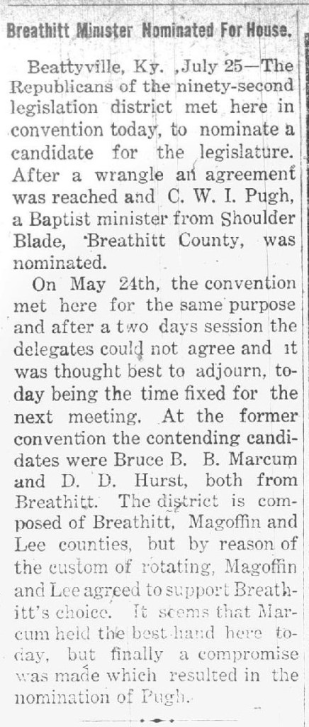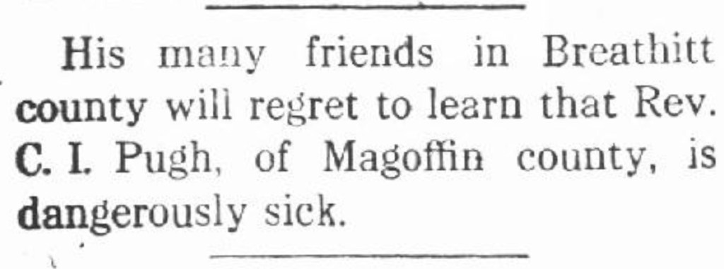 Lydia Milford (Bailey) Pugh died on March 2, 1922 at Lykins in Morgan County, Kentucky. Most likely buried in the Oney Cemetery on the Left Fork of White Oak Creek near White Oak, Morgan County, Kentucky.