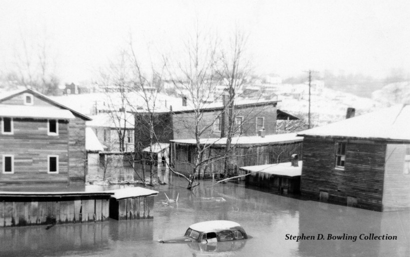On January 9, 1974, the rain started to fall unabated. Over the next three days, 5.44 inches of “hard rain” fell and mixed with melting snow to fill area streams. The North Fork of the Kentucky River flooded its banks and rose to 36.50 feet by the time it crested on January 11. Conditions across the county deteriorated, and widespread flooding was reported. Several bridges were destroyed, and the National Guard was called to help inundated residents. Captain Lewis Henry Warrix and his men of Company C of the 201st Engineers rescued many from their flooded homes.