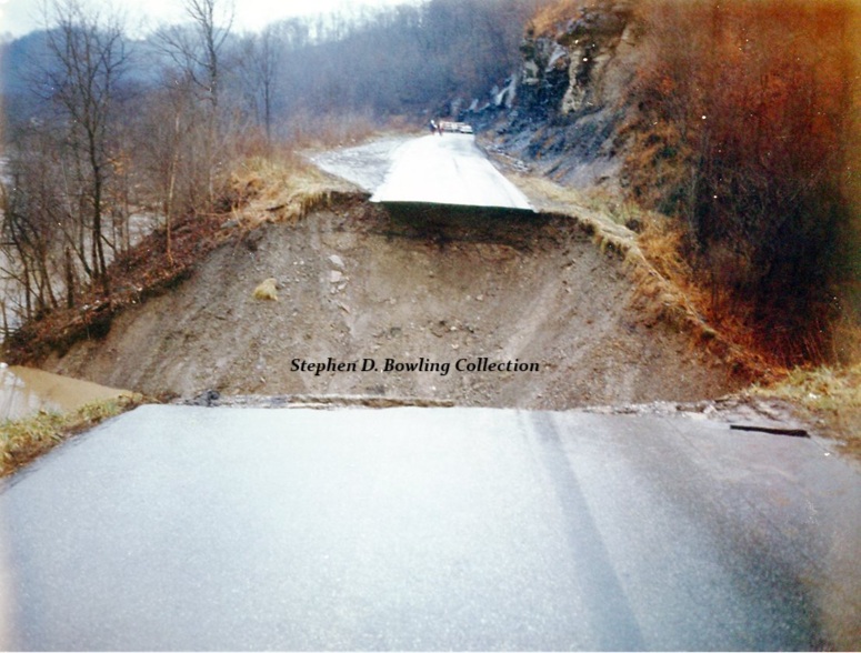 Today, “The Dip” is still a major feature traversed by everyone who travels on Highway 1110. Few remember the great chasm that opened on January 11, 1974 and the rebuilding effort that created this little depression on one of Breathitt County’s most traveled roadways.