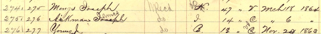 Died at age 24 on March 6, 1864, of inflammation of the lungs at the Camp Nelson General Hospital at Camp Nelson in Jessamine County, Kentucky. He was hospital patient number 2581.