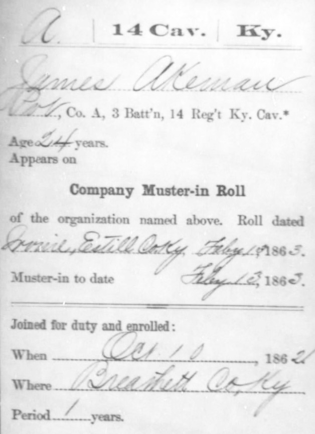Mustered In: February 13, 1863, at Irvine in Estill County, Kentucky