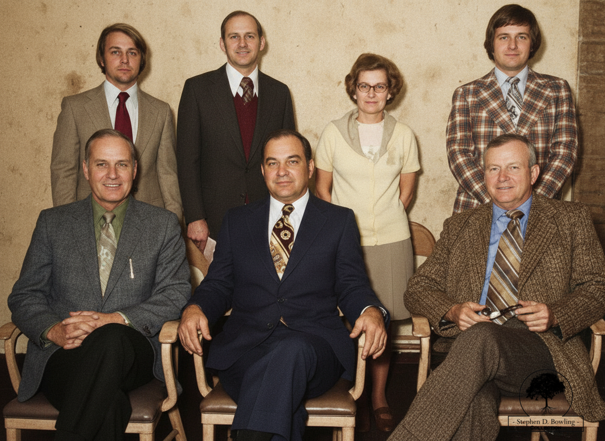 Around the table sat Mayor Leonard Noble, Kelly Watkins, Casey Morton, William Noel, David Hubbard, Greg Lemons, and Sewell.