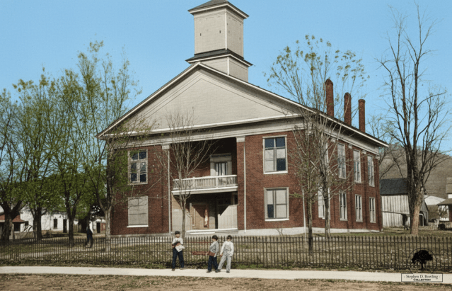 No one was standing on the porch when the firing started. The two combatants sighted their weapons, and each reportedly fired six shots. The newspapers that wrote about the exchange said they fired “without the least effect.”